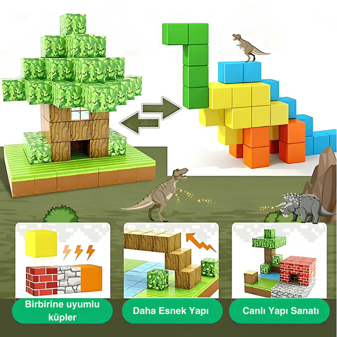 MagnetCraft’ın manyetik bloklarıyla portal, maden rayı, ateş yolu ve daha yüzlerce yapıyı kolayca inşa edin. Çocuklar kendi oyun evrenlerini tasarlarken saatlerce süren kaliteli oyuna dalar.